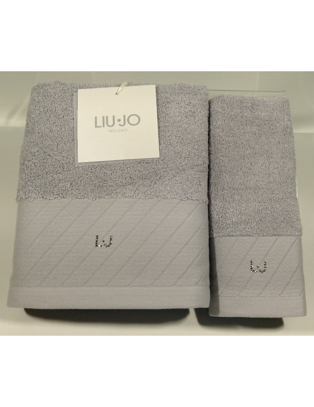 Spugna di Puro cotone 100% da 550 gr/mqCon fascia in trama diagonale e logo in Swarowsky |