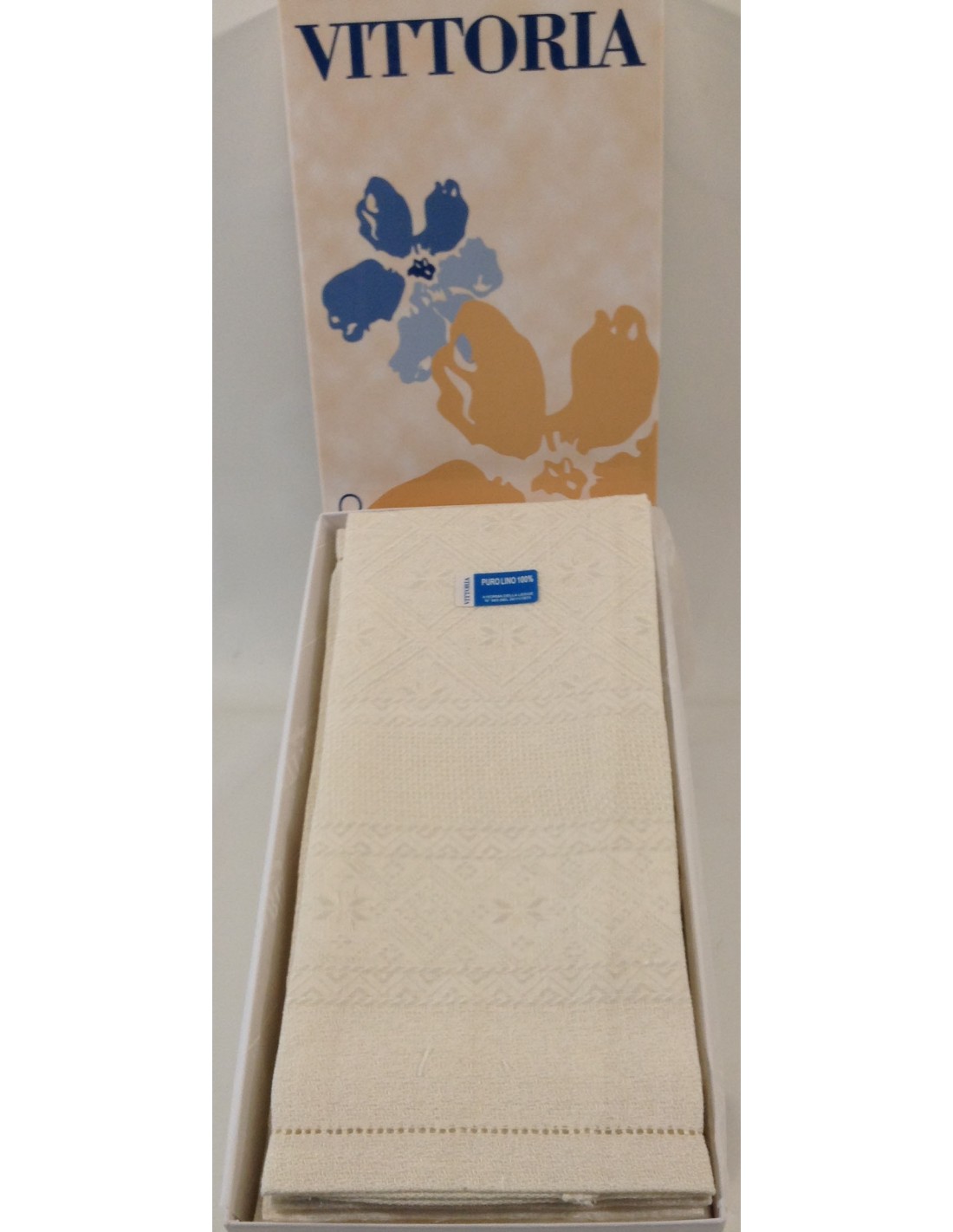 VITTORIA 6 OSPITI PURO LINO CON ORLO A GIORNO ecru